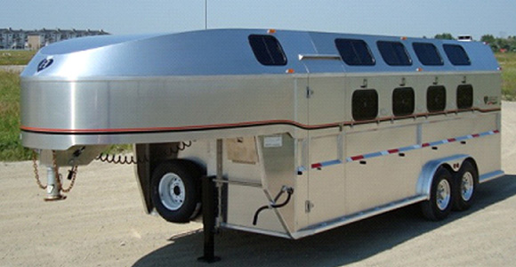 26 foot x 7'9" x 7'6" tall gooseneck. Front small weekender sleep area. Horses load on right side and stand backwards. Back end is for carraiges. Trailer has electric disk brakes